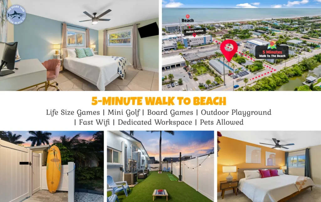 Steps from the sand, surf, and vibrant downtown Cocoa Beach, our stylishly designed vacation rentals offer the ultimate blend of comfort, charm, and coastal adventure.